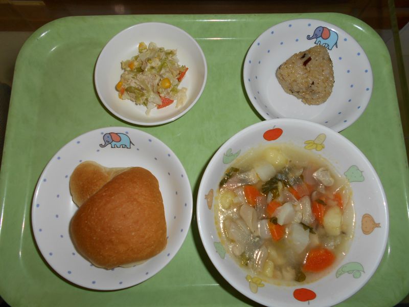 急に寒くなり、今日の給食のポトフが温かく、子どもたちの食がよく進みました。