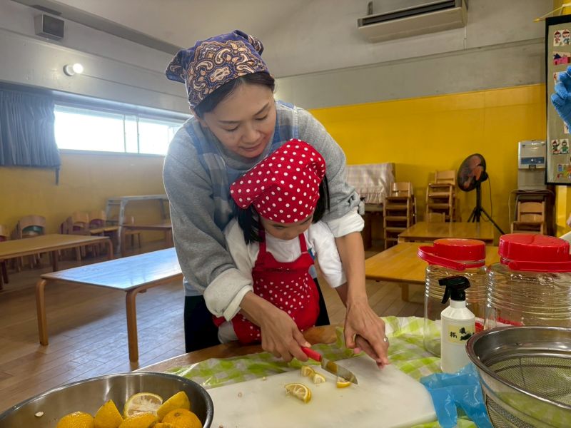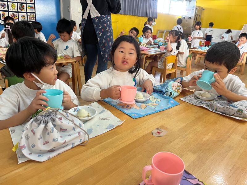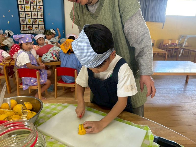 おやつで柚子ジュースが出ると、「美味しい!」「ちょっとすっぱい~」など友だちと話していましたよ♪