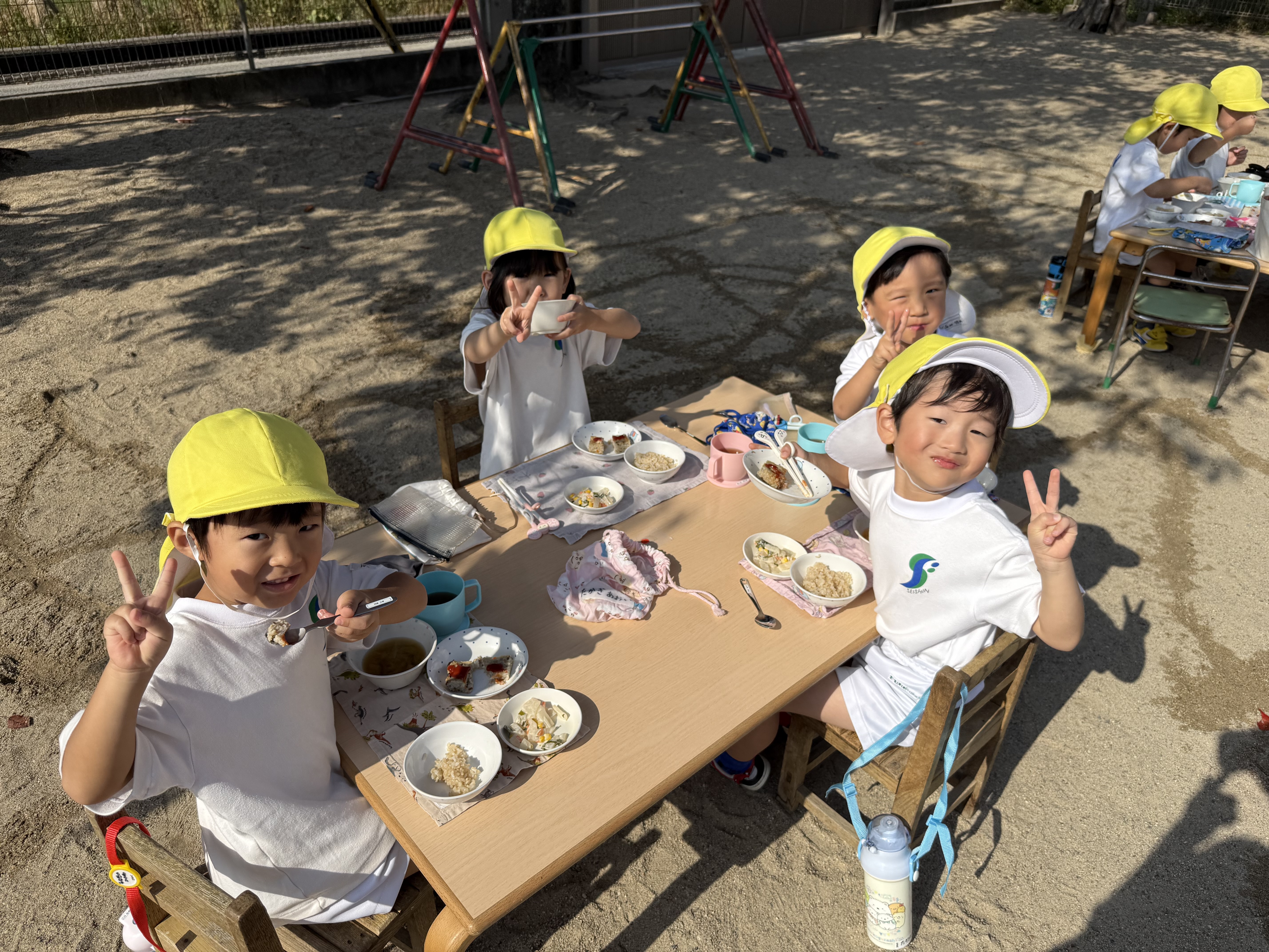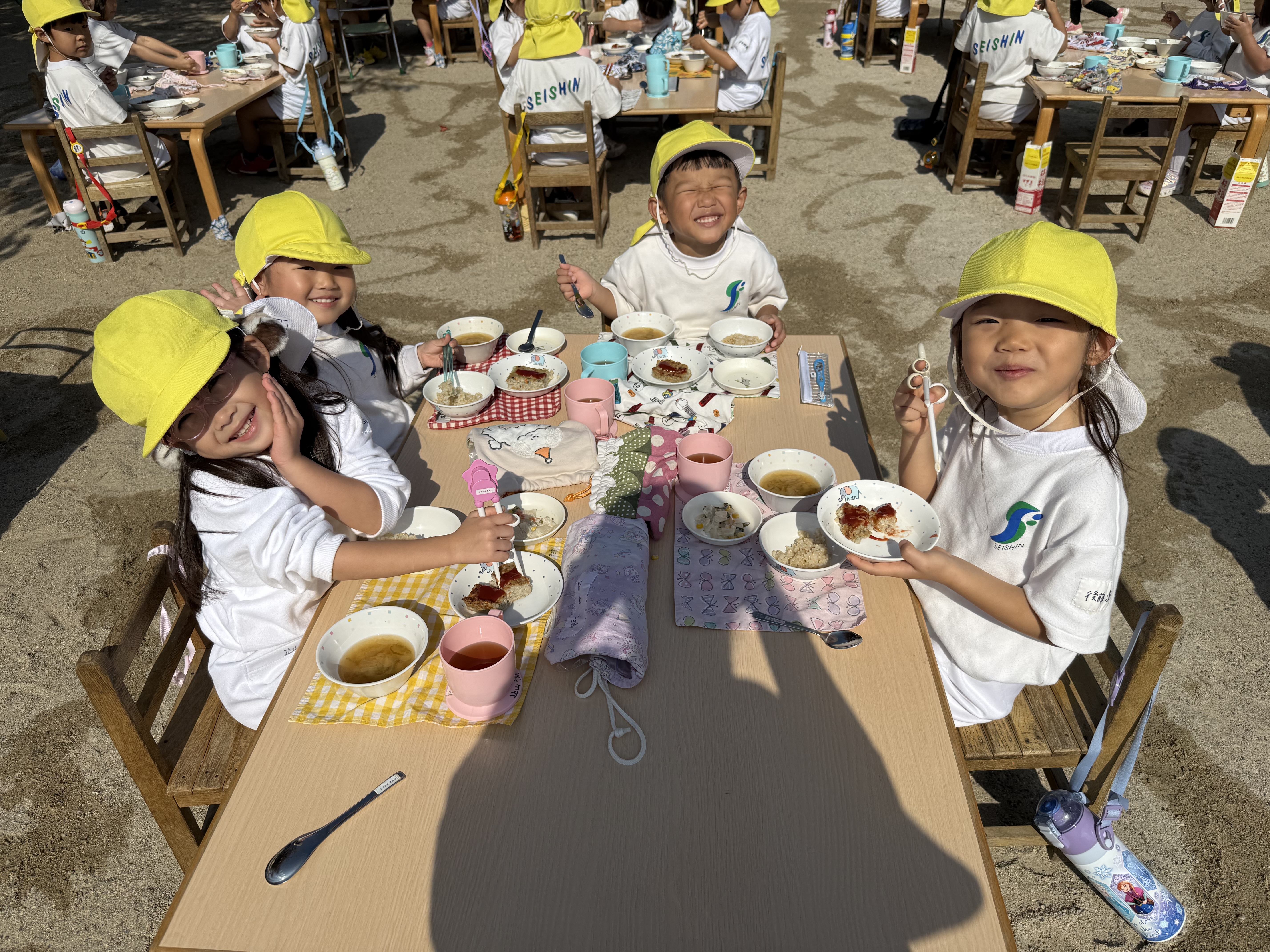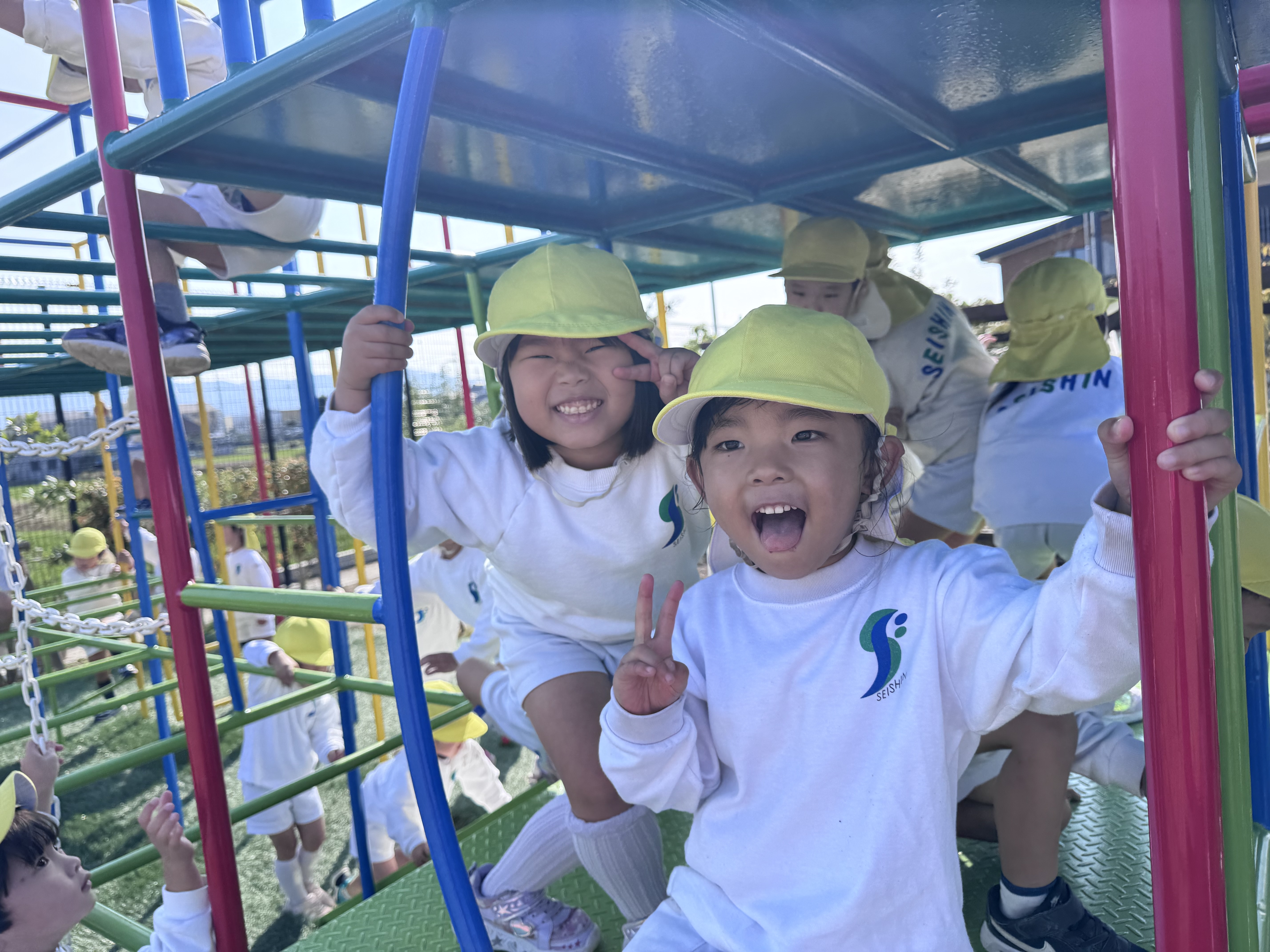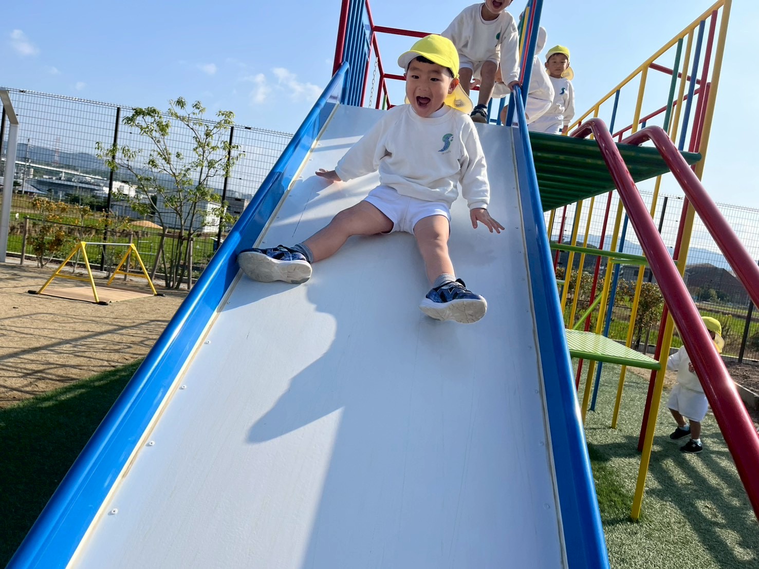 - 天気にも恵まれ、無事園外保育に行けました。行先はせいじん保育園!前日から楽しみにしていた子どもたちは朝から「今日は遠足!」とウキウキな様子。そしていざ出発!到着すると清心保育園にはない遊具が!!目をキラキラさせて「たのしーい!」と体をたくさん動かして楽しんでいました。そして園に戻ると園庭で給食を食べ、いつもとは違う雰囲気の中で子どもたちもとっても喜んでいました♪