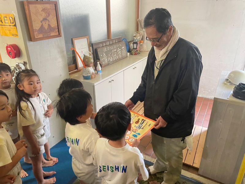 - 理事長先生に勤労感謝のカードを渡したよ!(5歳児 桜組)