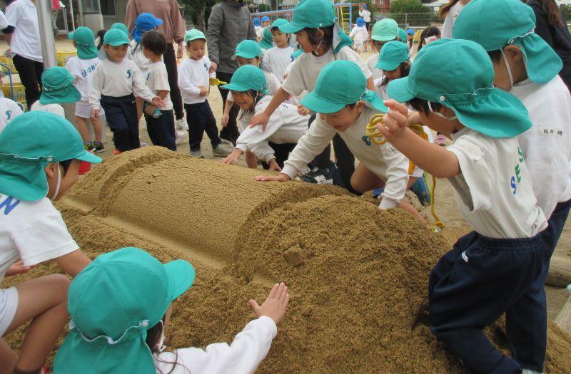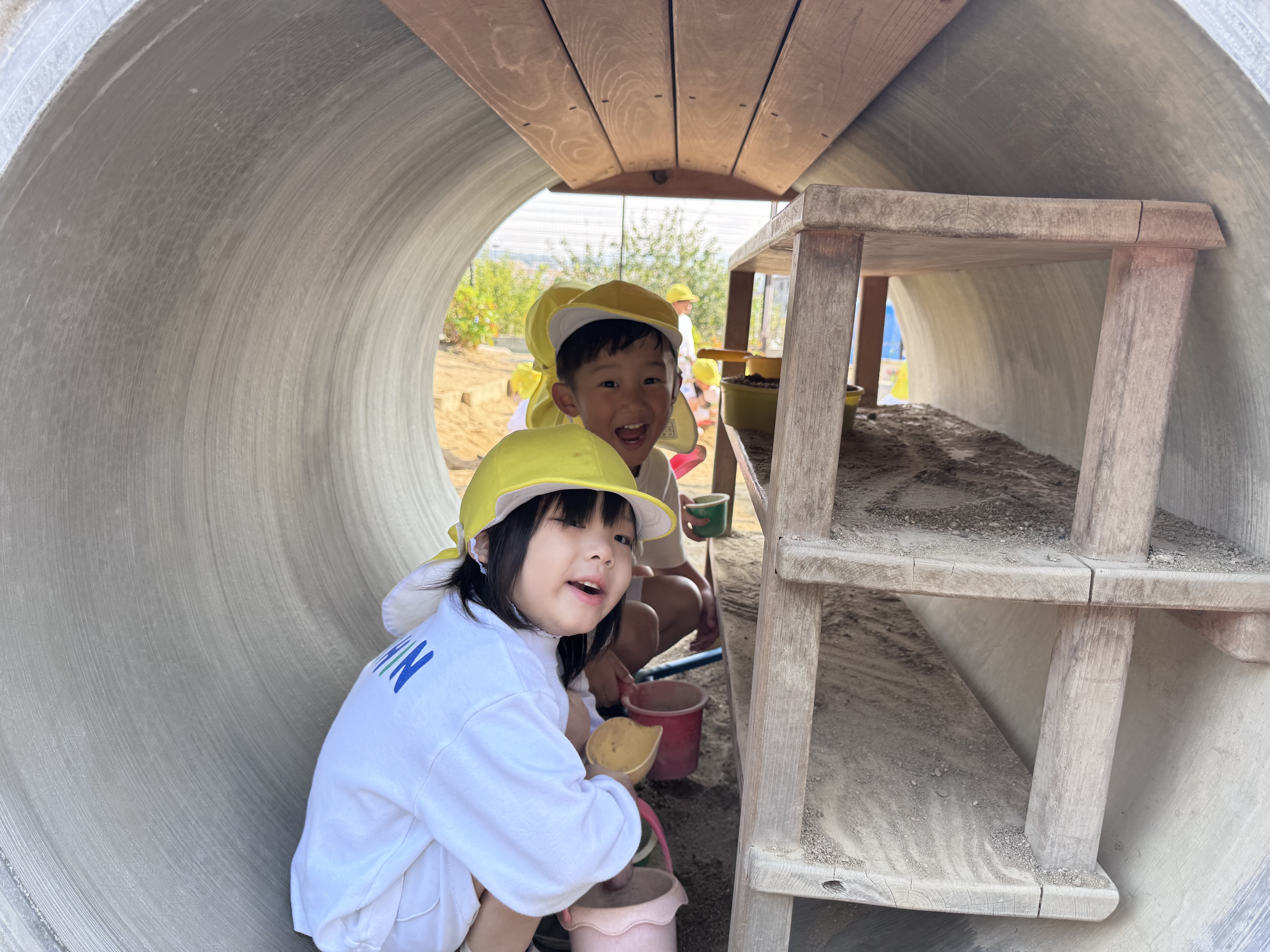 砂場に砂がたくさん入ると、「やったー!いっぱい!」「嬉しい♪」と大喜びでした♪