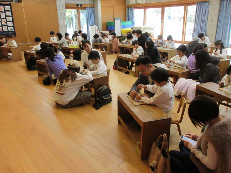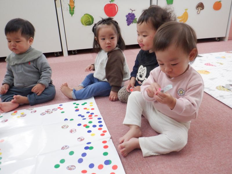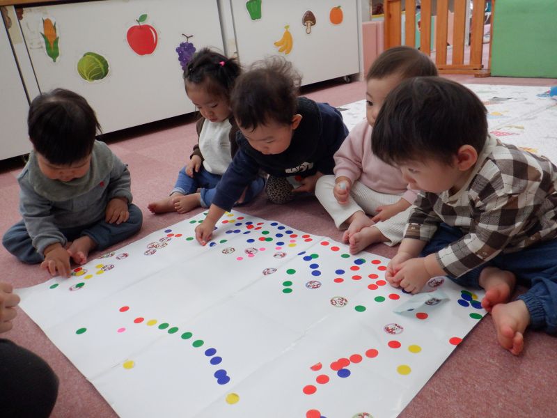 真剣な表情で、台紙からそーっとシールが取れると「できた!」と嬉しく喜んでいました。みんなで夢中になってシールを貼る姿がとても微笑ましいです。
