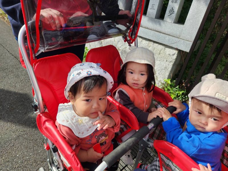 - 天気が良く暖かい日は、ワゴンやベビーカーに乗りお散歩へ