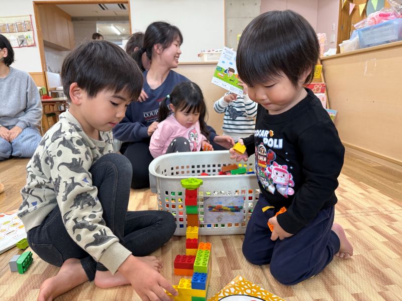 一緒に本を見たり、レゴブロックをして楽しい時間を過ごしていましたよ。