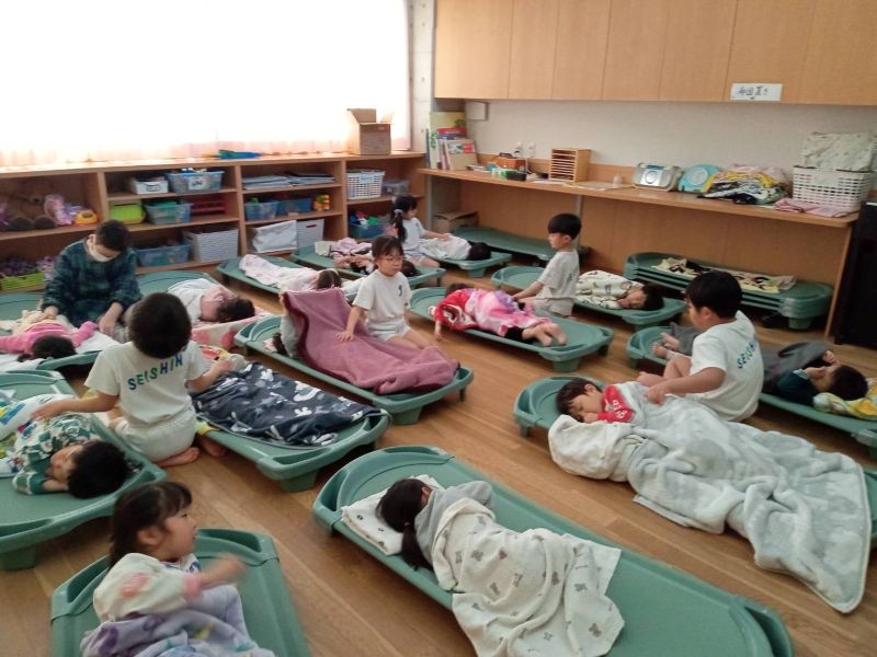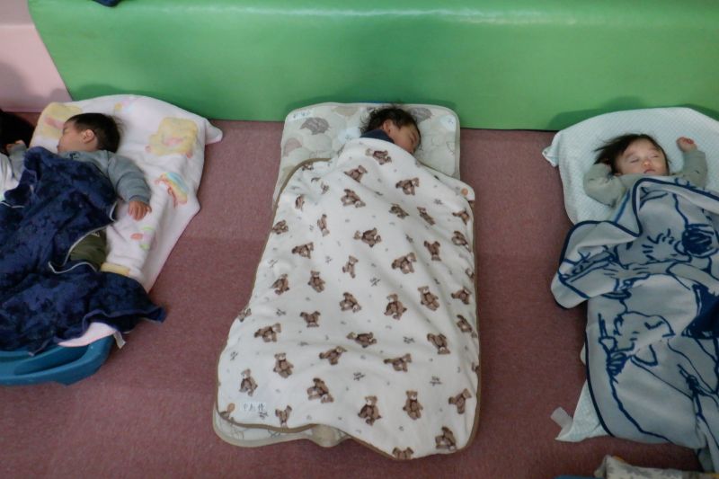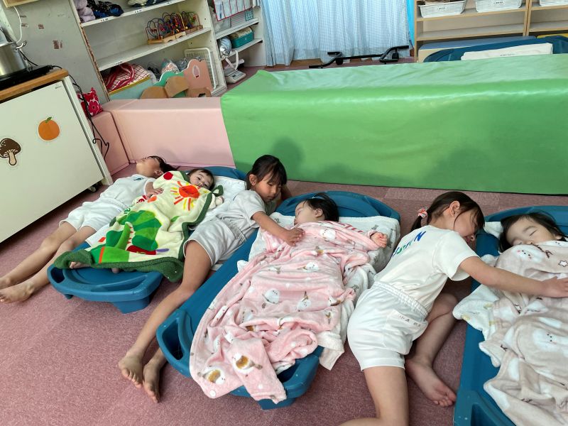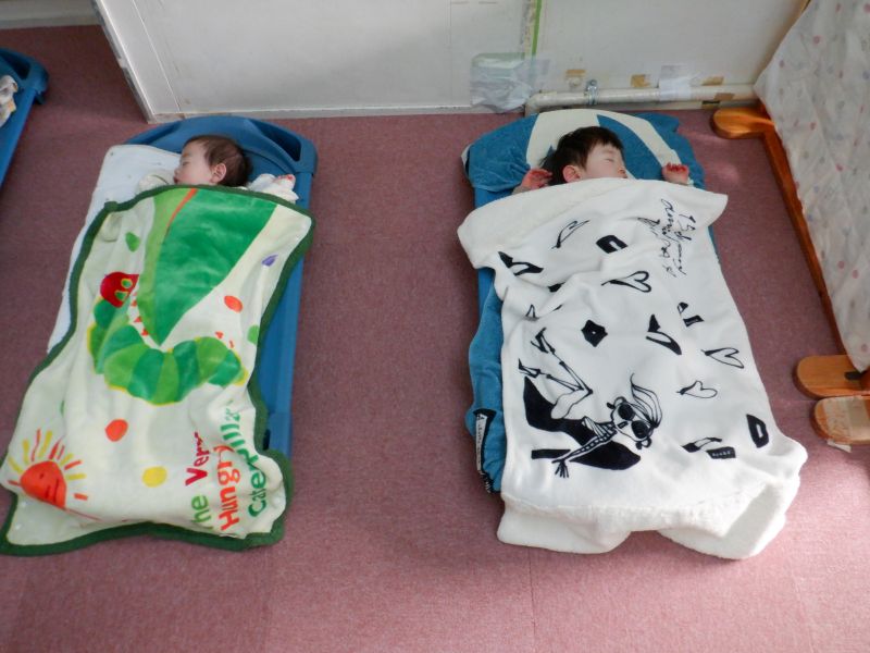 お布団と違う寝心地に、不思議そうにしていましたが、すぐに夢の中へ