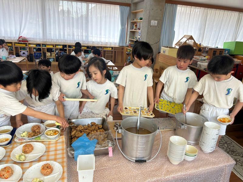 先週から各クラスに行って遊び、今日行くのを楽しみにしていた桜組。早く桜組さんに来てほしかった李組さん~梅組さん。ふれあい遊びやゲーム遊びなど、楽しい時間を過ごしました。給食もスペシャルメニュー!みんなで美味しくいただきました。