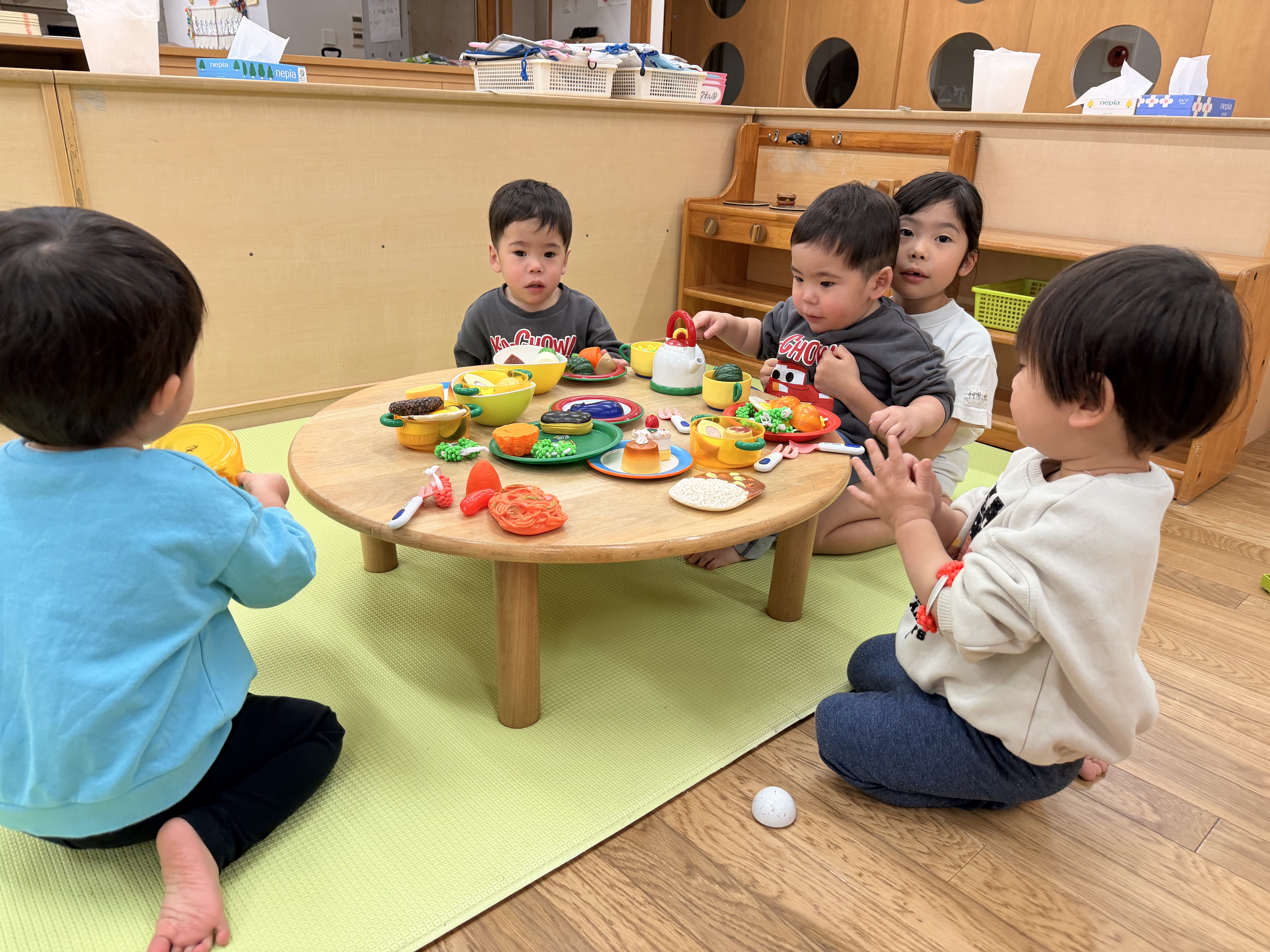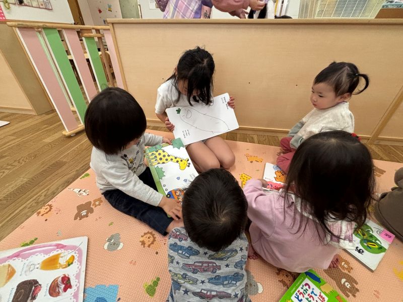 - もうすぐ卒園する桜組さんがレモン組のお部屋に遊びに来てくれました。