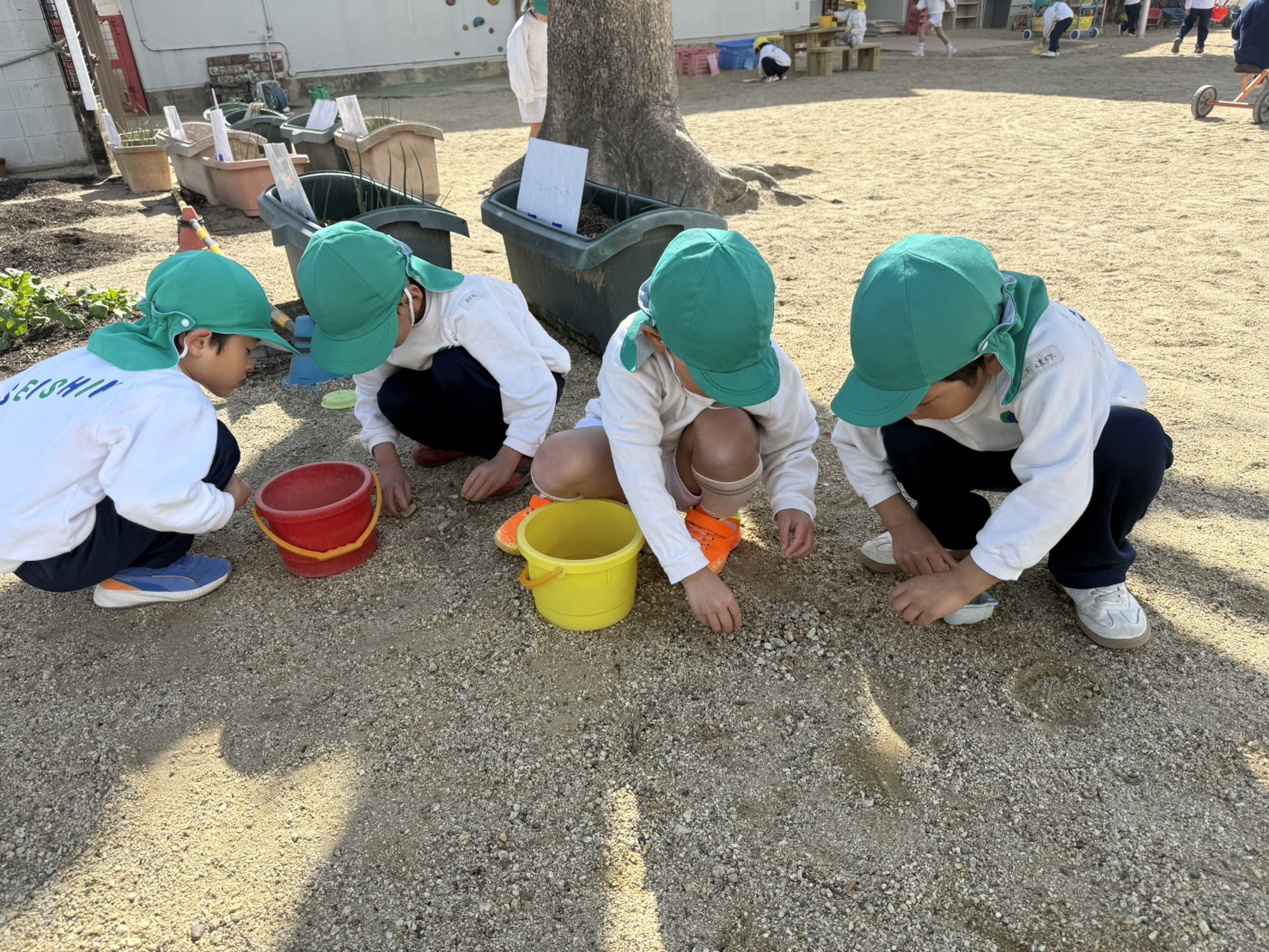 幼児組さんも小石を拾ったりと保育園をきれいにしてくれました。