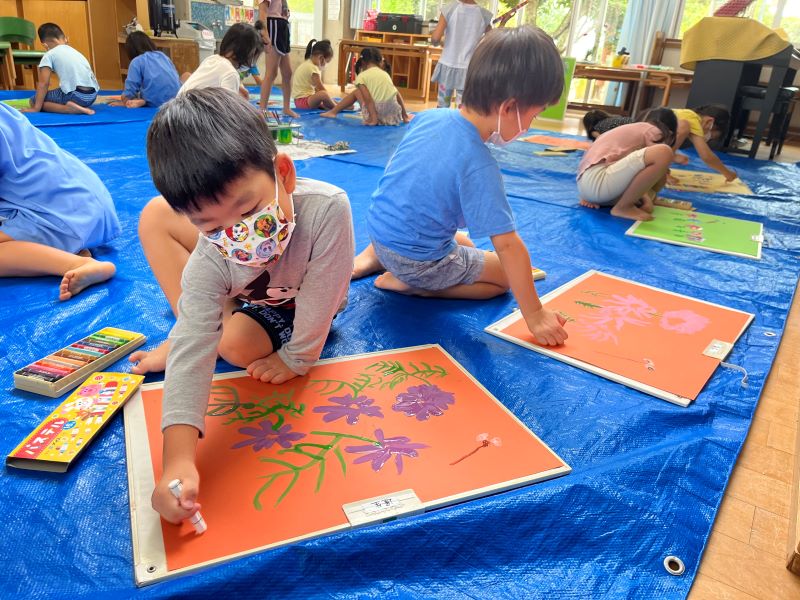 「こいのぼりさんお洋服つくるからね~」と言いながらうろこつくりを楽しんでいました♪