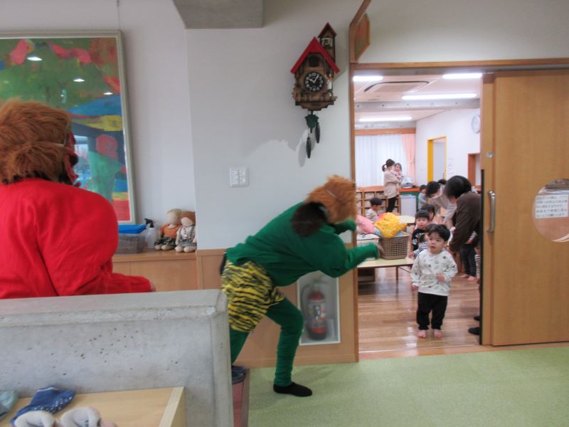 - お散歩に出たら魔女サンマークの付いた袋を発見。中にはみんなの名前が書いてある兜バッチと手紙が!「やったー!魔女さんからのプレゼントや。ありがとう」と大喜び。早速、お礼を言いに行こうと魔女の館に向け出発しました。