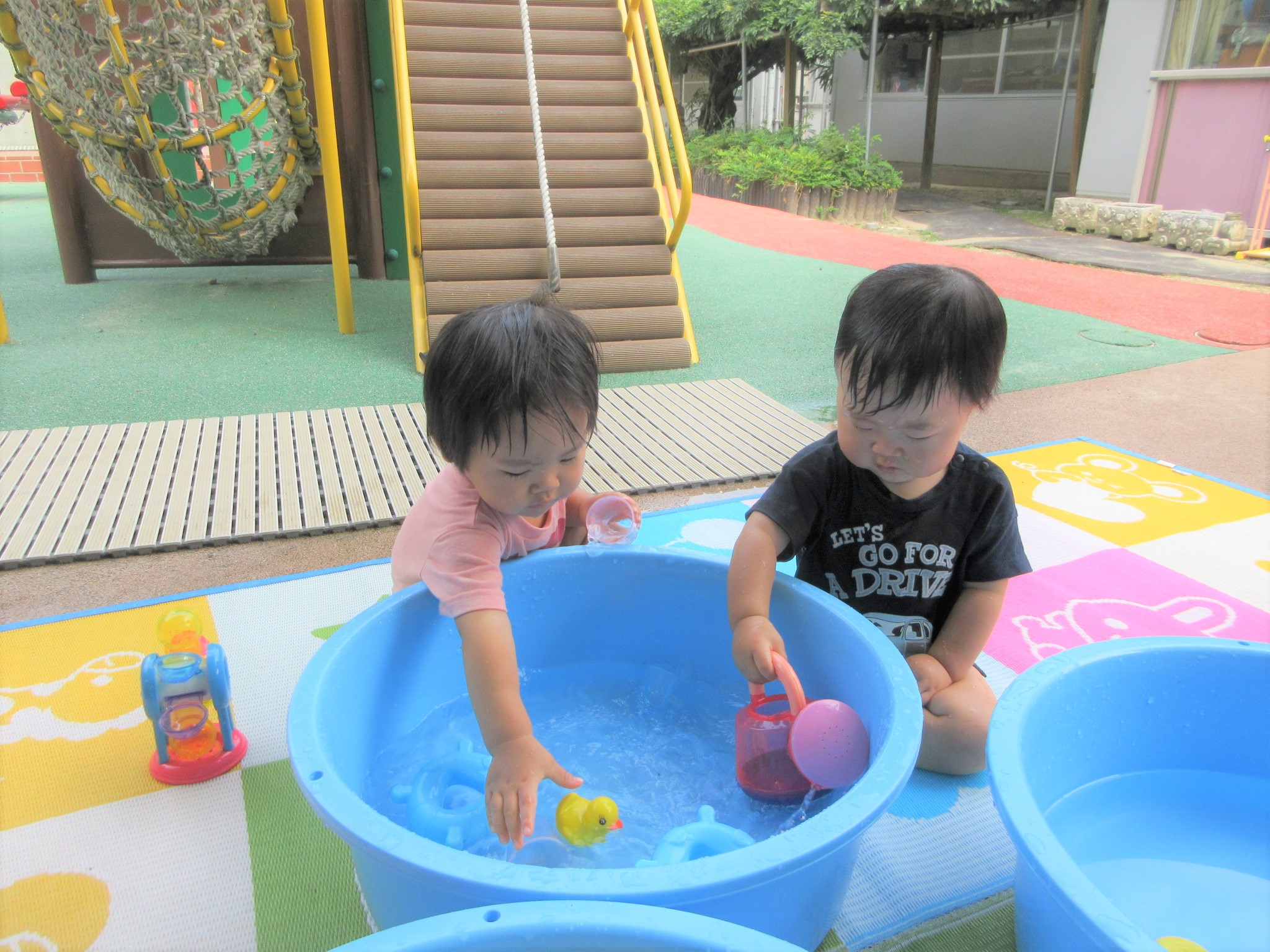 - トントン…冷た~い氷だよ!(0歳児 李組)