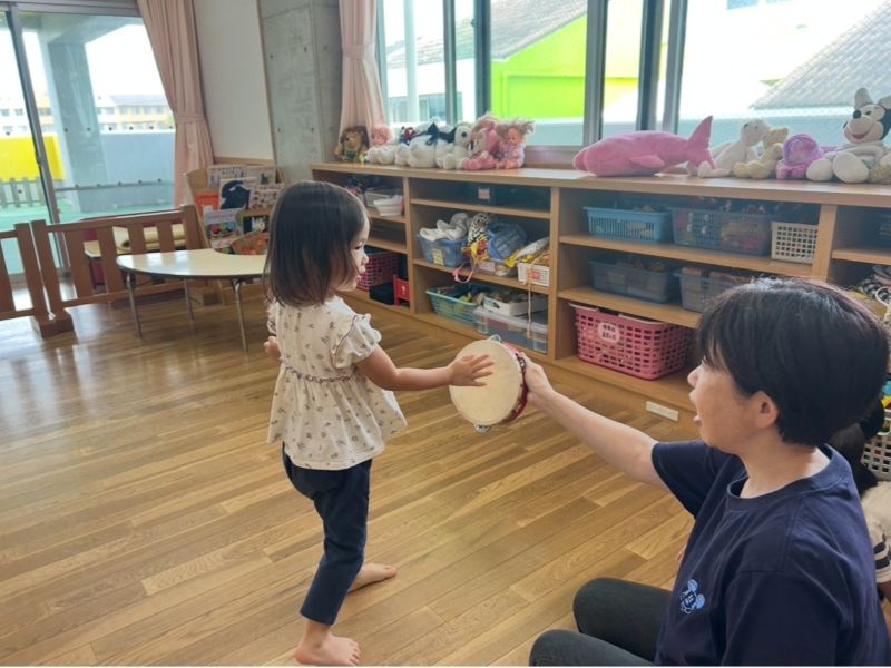れ・も・んのリズムに合わせてタンバリンを鳴らして楽しんでいます。