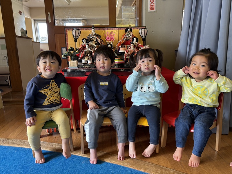 - みんなでお雛様を見に園内散歩に行ったり、お天気のいい日はお外に遊びに行ったり…