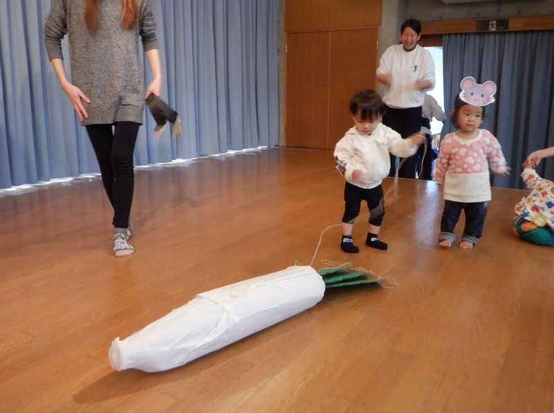 - おもちゃで遊んだり、体操したり、紙芝居を見た後、みんなで劇遊びをしました。保護者の方と一緒にたくさん遊び、楽しむ子どもたちでした!
