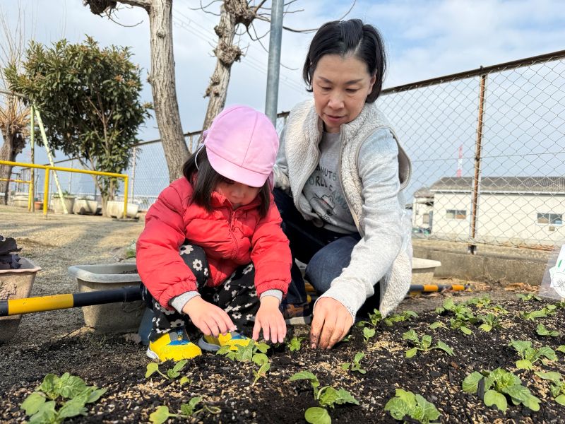 - 以前みんなで植えた大根の種。園庭を見に行くと芽が出ていました♪