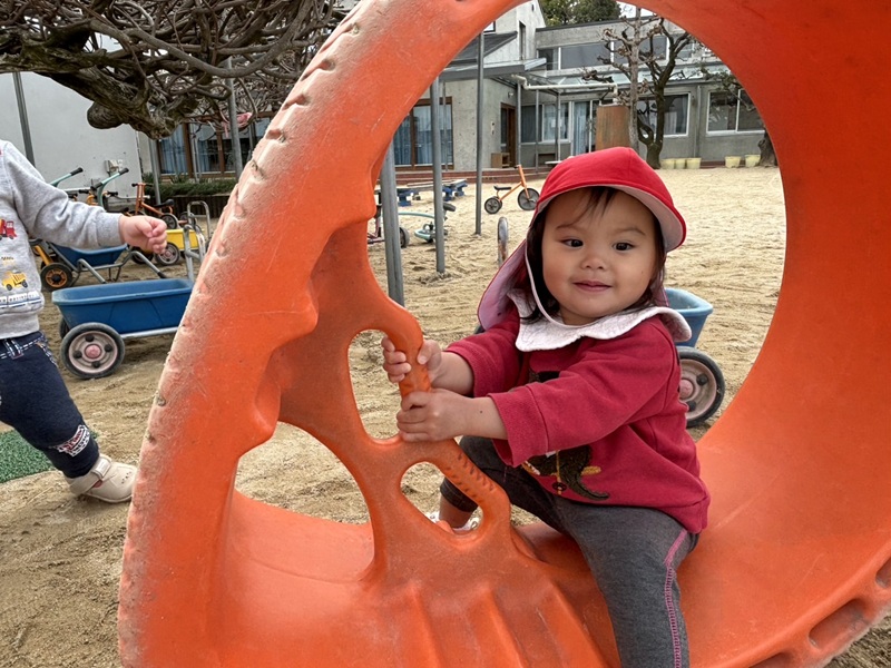 お部屋では最近、形合わせ遊びが好きで「ここかな?」「カエルさんいた!」と楽しんでいます。