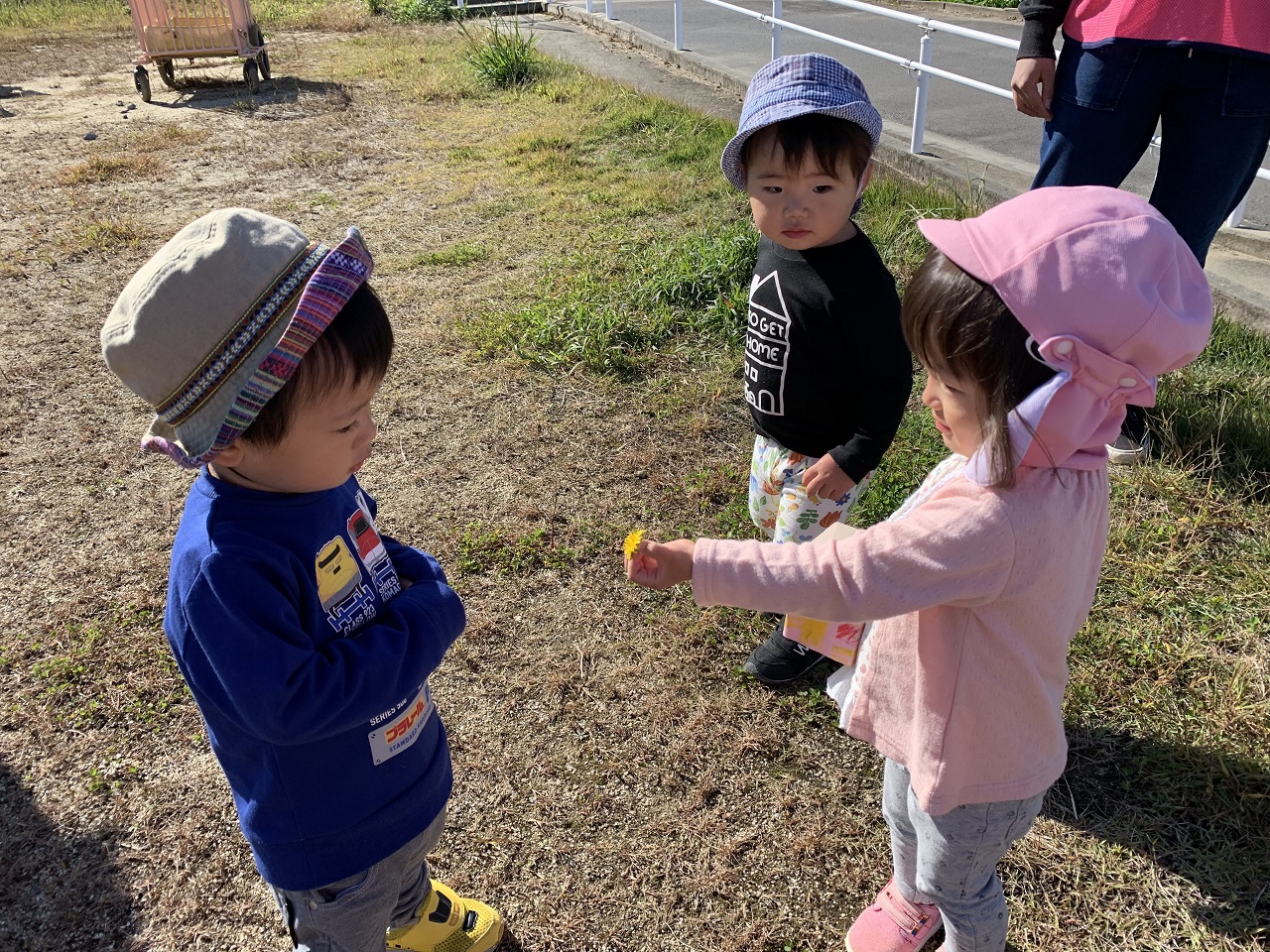 保育者と一緒におもちゃで遊んだり、ベビーカーの心地よい揺れを感じたりしながらゆったりと過ごしています。