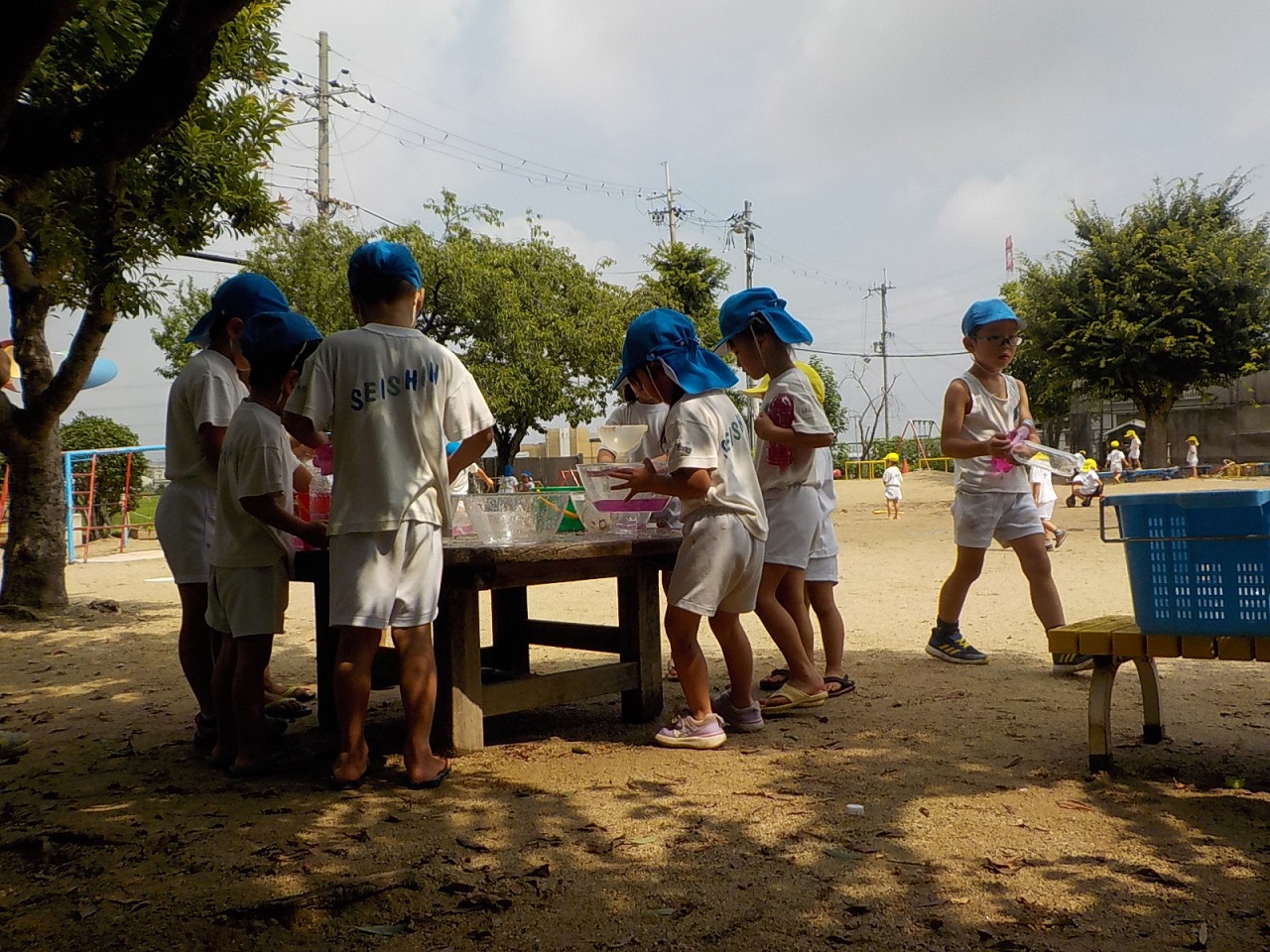 水のタプタプとした感じが好きでずっとニギニギしている子、片栗粉の「ギュッギュッ」という音を気に入って何度も鳴らして喜ぶ子など、色々な姿が見られます。