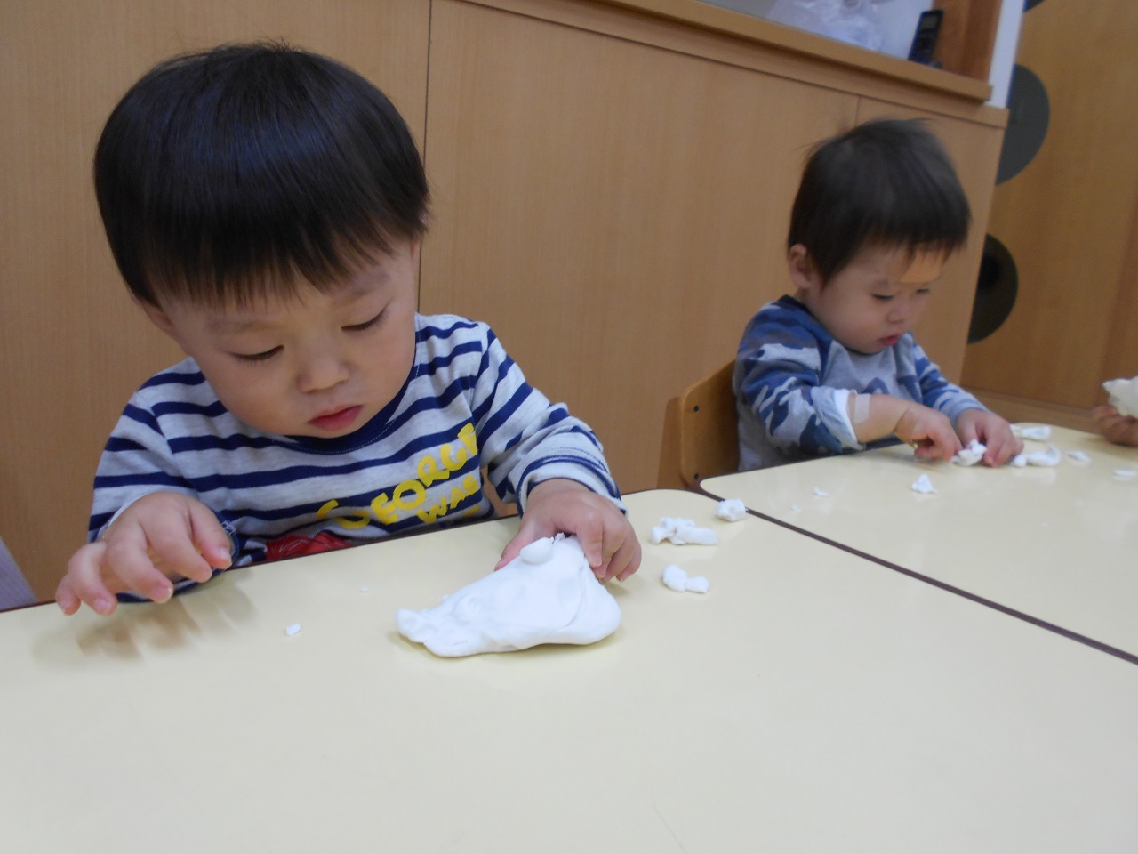 手にいっぱいのどんぐりを握りしめ「みてー」「いっぱい」と目をキラキラさせている子どもたちでした♪