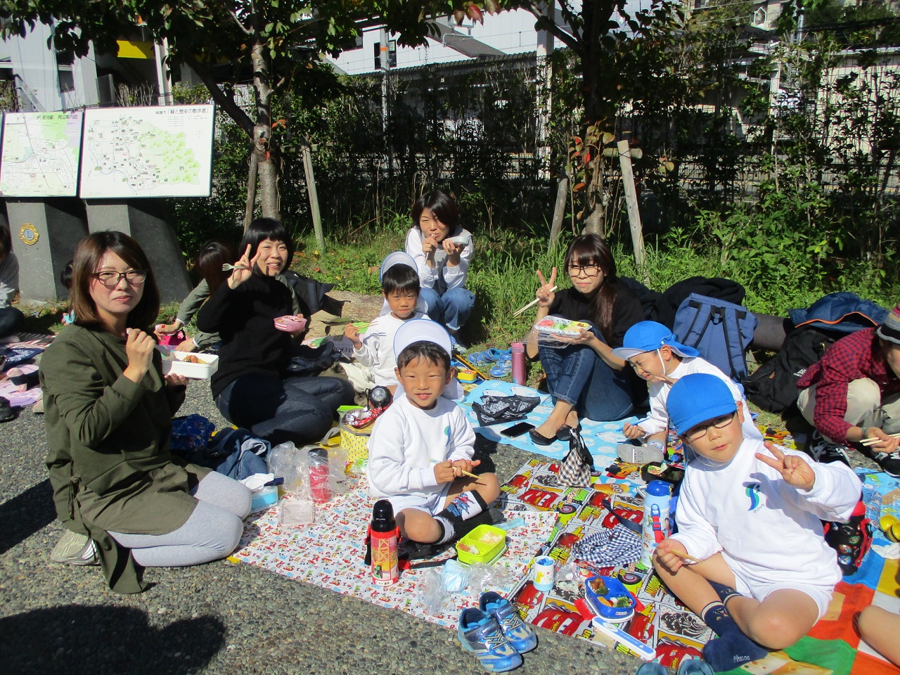 - 園庭の木々もきれいい色づき、”落ち葉まつり”の季節になりました。一年を通しての木々の恵みに感謝し「大きな木」の紙芝居を見たり、どんぐりやどじょうさんたちと一緒に楽しく踊ったりしました。その後は各お部屋に分かれて、拾った葉っぱを数えたり大きさを比べたり構成したりなどのステキな時間を過ごしました。
