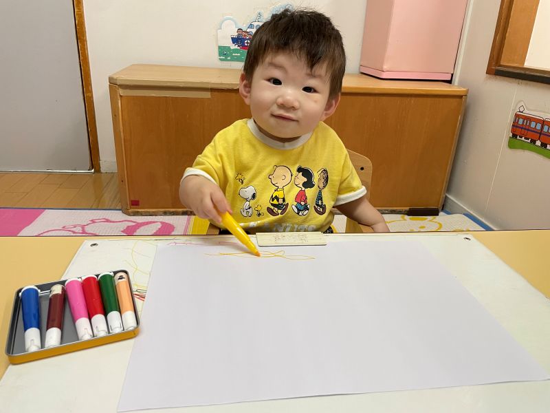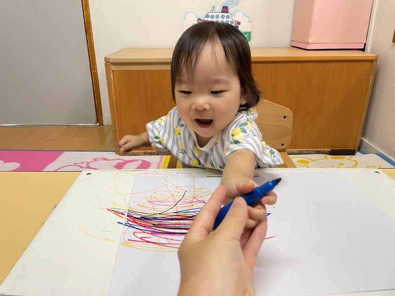 - 保育者に「どの色にしようかな?」とペンを見せながら尋ねられと