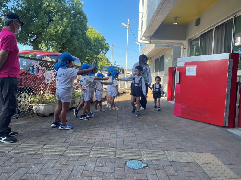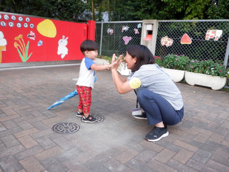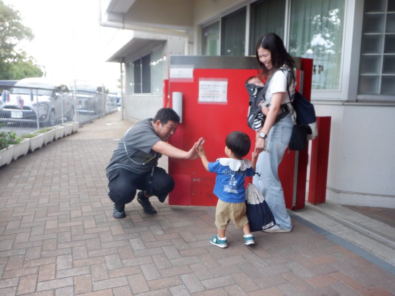 - 登園してくるお友だちや保護者さんに「おはようございます!」と桜組さんが元気にご挨拶♪今日もたくさんの笑顔でいっぱいでした♪