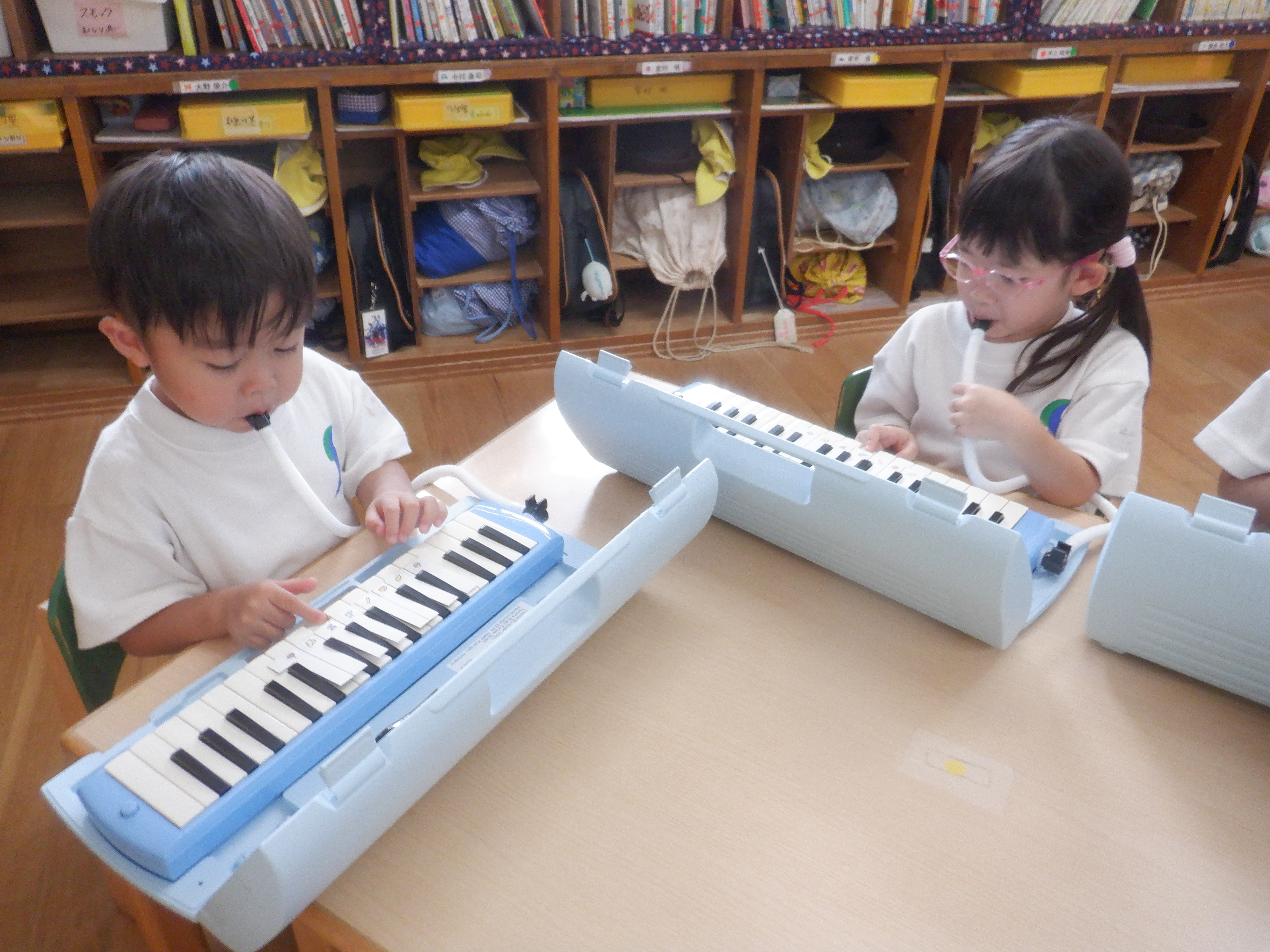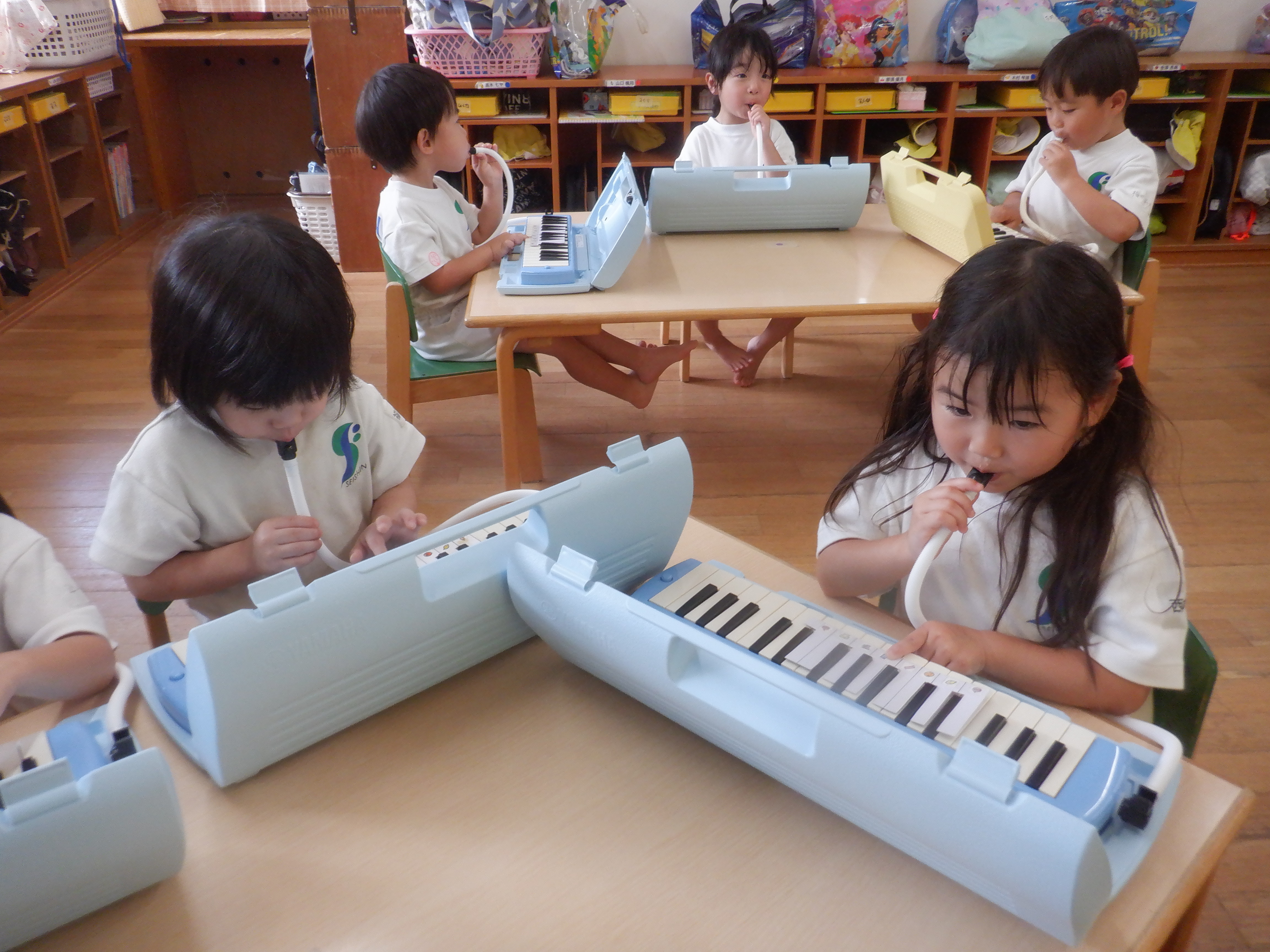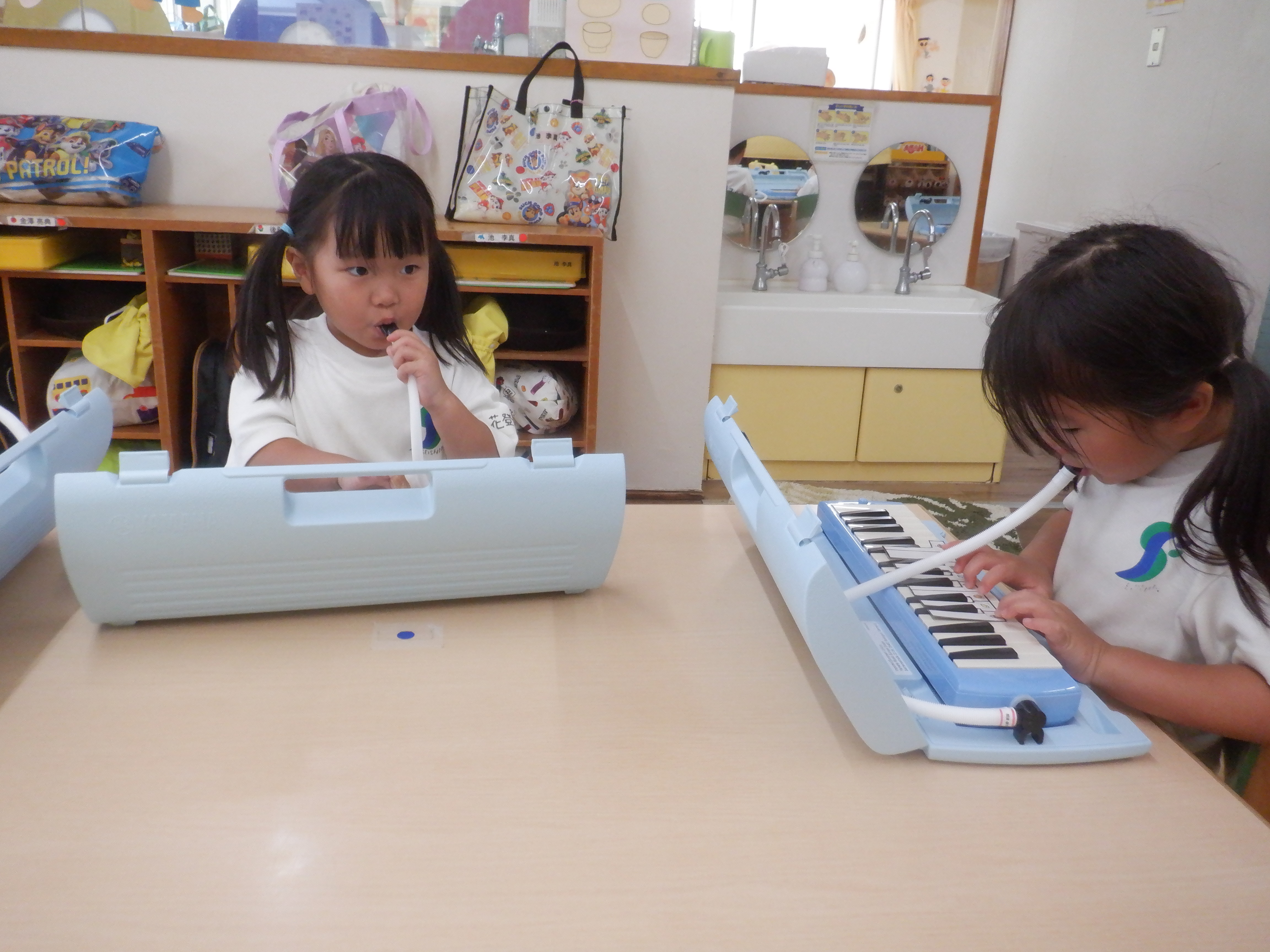 - まちにまったピアニカをしました。お部屋にはなんとピアニカくんからのお手紙が…!とっても嬉しそうな子どもたち♪お手紙には、「そーっと起こしてね」と書いてあったので、優しく撫でて起こしていましたよ。ピアニカはどうやって鳴るのかな?とみんなで色々と考え・・・息を「ふぅ~」と吹くと音が鳴り喜んでいました!これからもいっぱい楽しもうね♪