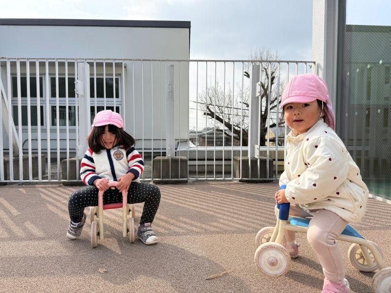 また、ブランコやバイクもお友達と順番交代しながら楽しんでいましたよ!