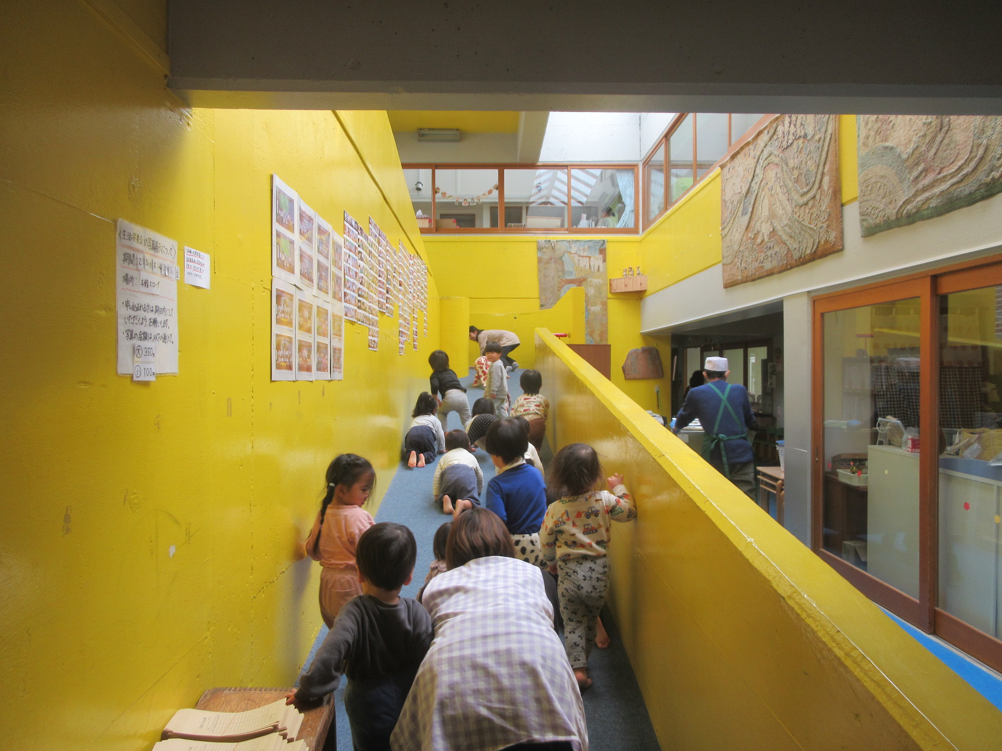 園内散歩ではスロープをハイハイで一生懸命登り、元気いっぱい身体を動かしました!