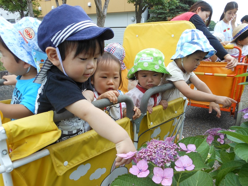 - 今日は桃組になってはじめての散歩です!春の心地よい風がすーっと駆け抜ける農道で いろんなものを見つけてきましたよ♪「むしむし発見!」「お野菜なんだろな?」「葉っぱの下何かいるよ」etc・・楽しいこといっぱいのさんぽっぽでした(^^)