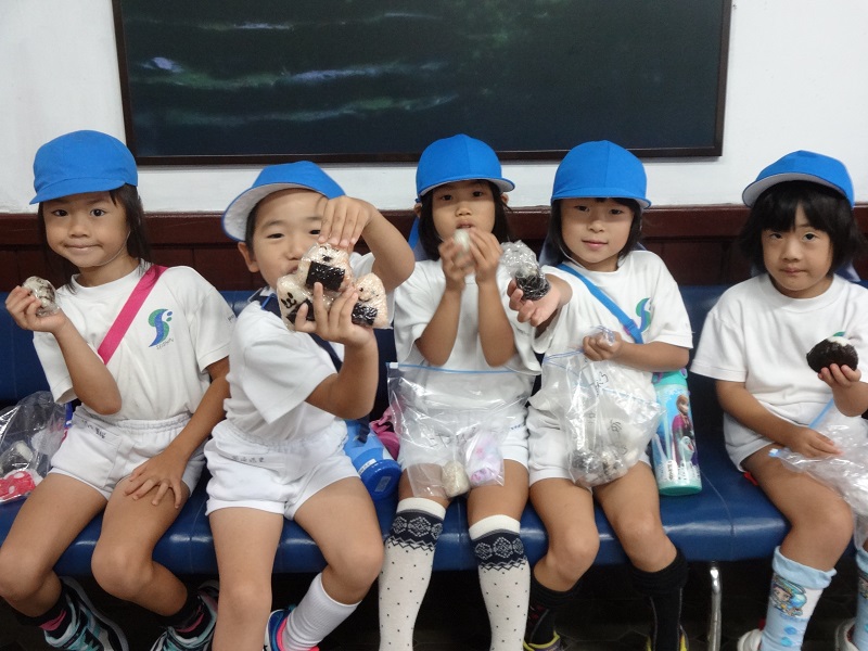 みんなたくさん歩いてお腹ペッコペッコ!おにぎりおいしいね!!