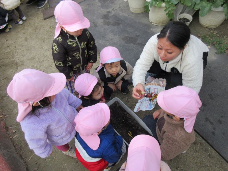 - 李組の窓にカマキリがとまっているのを子どもたちが発見!興味津々で近づき、じーっと見つめたり、触ろうとしたり、怖くて遠くの方から見ていたり。。。様々な姿が見られました。
