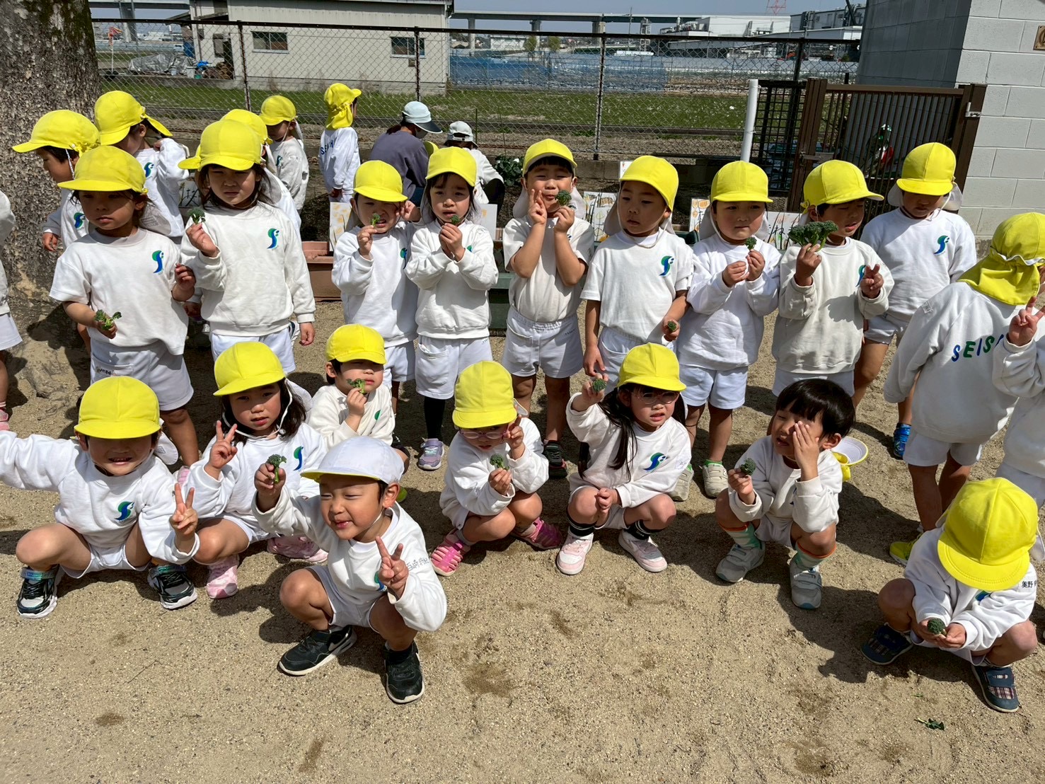 - 秋ごろにみんなで植えたブロッコリーが立派に育ったので、収穫しました!収穫したブロッコリーの匂いを嗅いでみたり、触って持ってみたり、、、自分たちで育てたものはやっぱりうれしいようでみんなにっこにこでした(^^♪そのあとは、給食の先生にお願いして、湯がいてもらい給食の時にマヨネーズをつけて食べました。「おいしー!」と満面の笑みで食べていましたよ♬